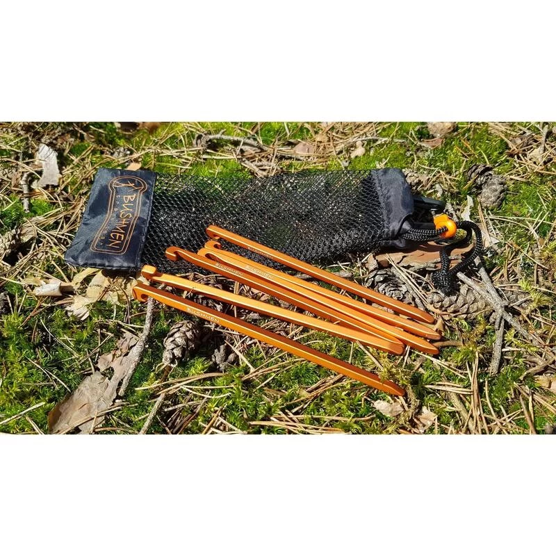 Clous à pointes carrées en aluminium léger, parfaits pour les sols plus durs et pierreux. Lot de 6 dans un sac de rangement pratique.