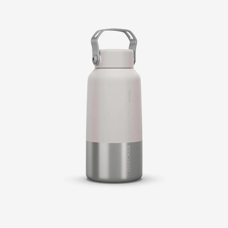 Le bouchon est muni d’une anse large et mobile qui permet de le porter à la main ou de l’accrocher grâce à un mousqueton.
