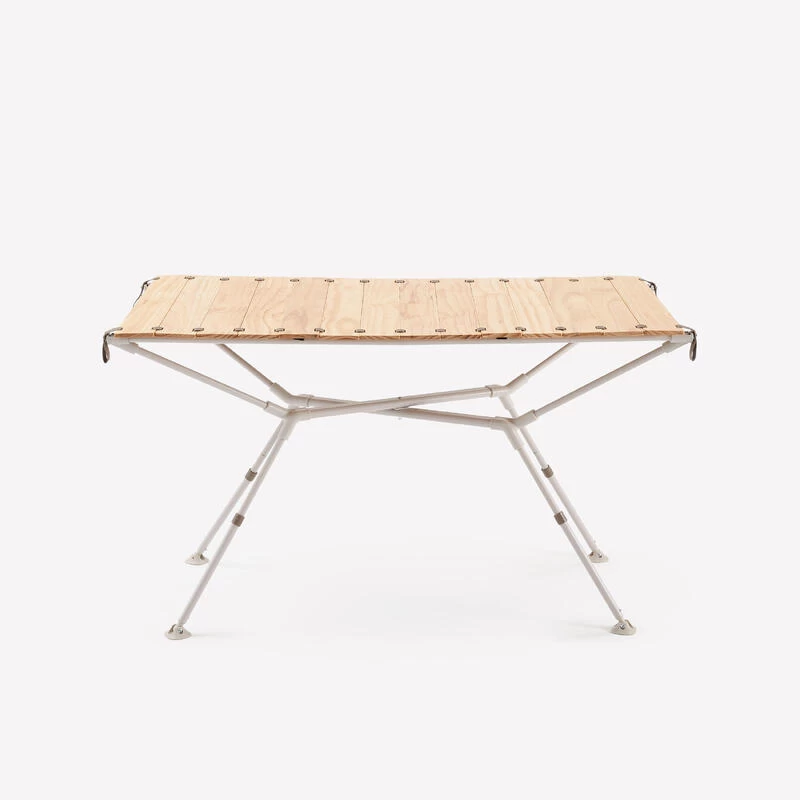 Le bois est un matériau qui change. Sa couleur va évoluer dans le temps. Il faut éviter de laisser la table trop longtemps dehors et sous la pluie. Bien essuyer son plateau dès qu’il y a de l’humidité. Dans l’idéal, abritez votre table durant la nuit dans votre tente familiale ou votre séjour.