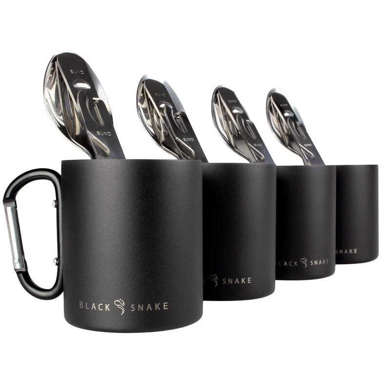 Set De Couverts De Camping & Tasse Thermique à Mousqueton | 4 Personnes