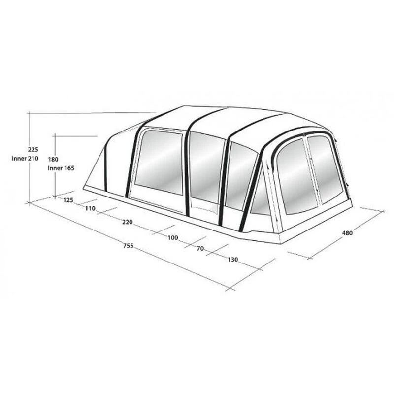 La tente de camping Outwell Jacksondale 7PA est un modèle gonflable en polyester composée de 3 chambres pouvant accueillir 7 personnes.