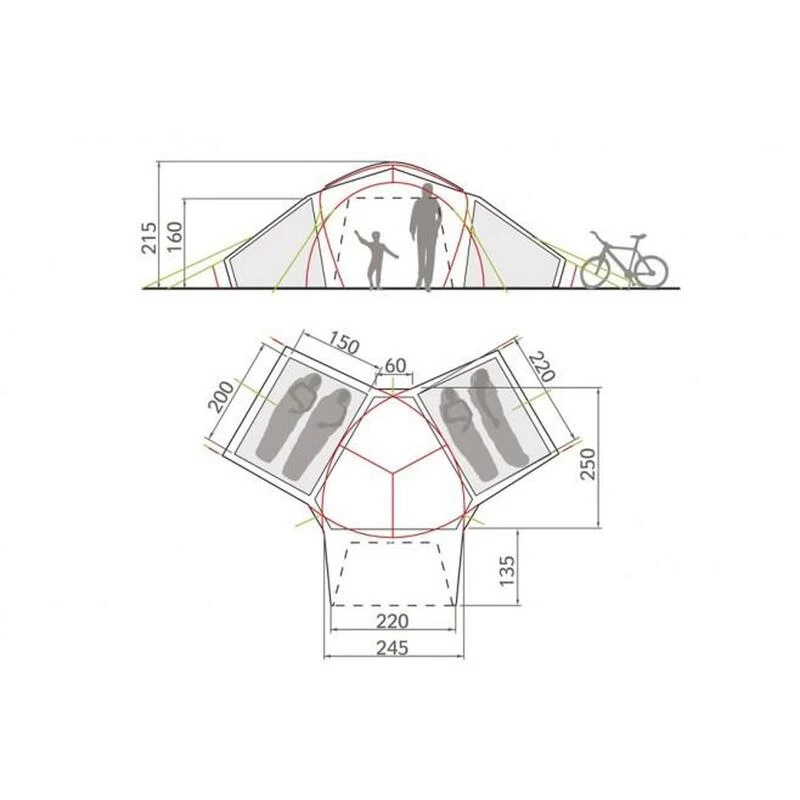 Grande tente familiale pour le camping, intérieur spacieux, 2 cabines-chambres, très bonne ventilation